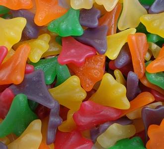 Sugar, Water, Wheat Glucose Syrup, Invert Sugar, Thickener (acid modified wheat starch), Gelatine, Food Acid (330), Glazing Agents (Vegetable Oil, 903), Flavours, Colours (102,122, 110, 133)