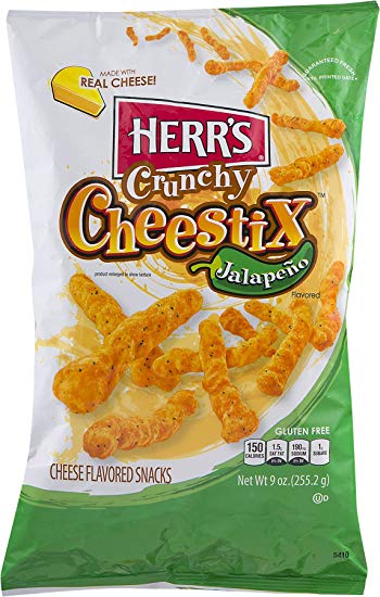 Herr’s Jalapeno Crunchy Cheestix have a big cheesy flavour with a zesty pinch of jalapeno pepper that packs a punch!